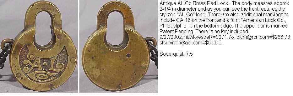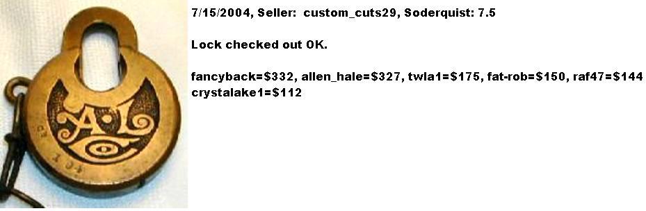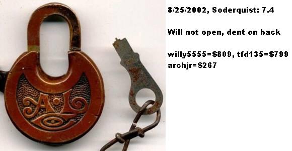 “. Size: 2B50. Padlock Stamp #: 0315-E. Color: Not determined.