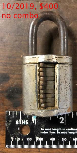 2 3/4″ high x 2″ wide. Steel body. Steel shackle.