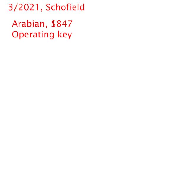 2 1/2″ high x 2″ wide x 13/32″ deep (Actual: 2.494″ high x 1.981″ wide x .404″ deep). Iron body. Iron shackle. Original key. Curved recess shackle. Push Key.