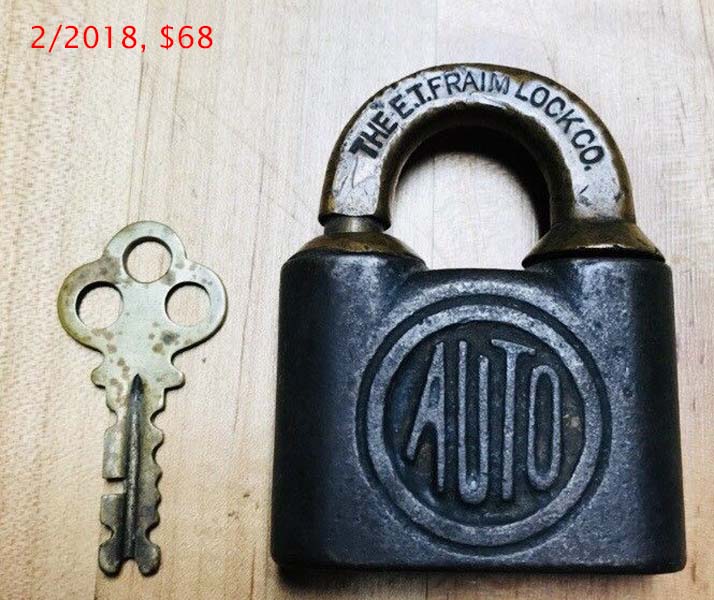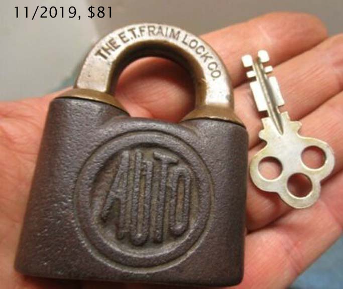 Brass body. Brass shackle. “THE E. T. FRAIM LOCK CO.” is stamped on the obverse of the shackle.