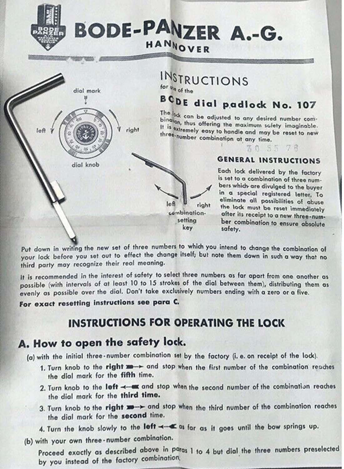 Home Gallery ← Combination Padlocks “BODE•PANZER A•G”