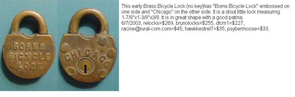 Home Gallery Transportation Locking Devices ← A thru F “BORNS BICYCLE LOCK” – “CHICAGO”