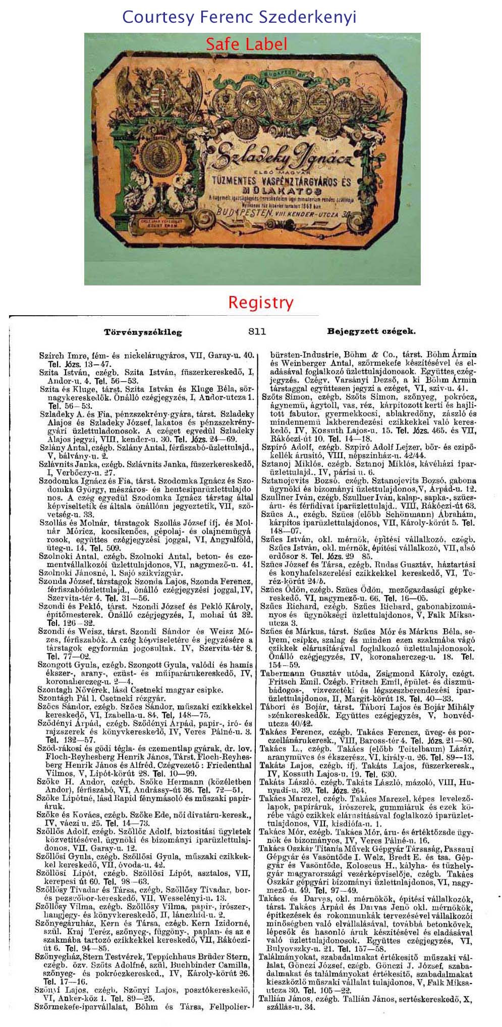 3 1/8″ high x 2 5/16″ wide x 1 15/16″ deep. Iron body. Iron shackle. “26906” is stamped on the body. “BUDAPEST SZLADEKY” is stamped on the shackle. “20548” is stamped on the original key. There is a brazed repair. This lock was used on mail bags and cash bags.