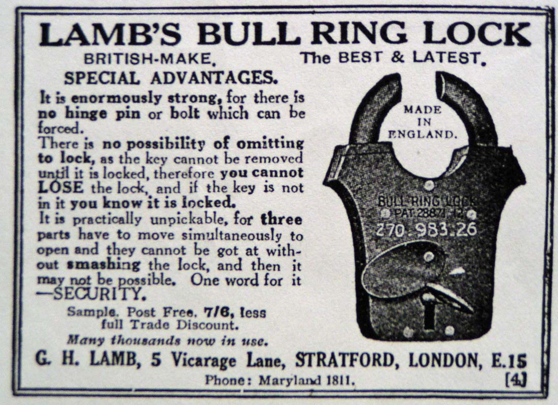 Home Gallery ← Lever Padlocks “BULL RING LOCK PAT