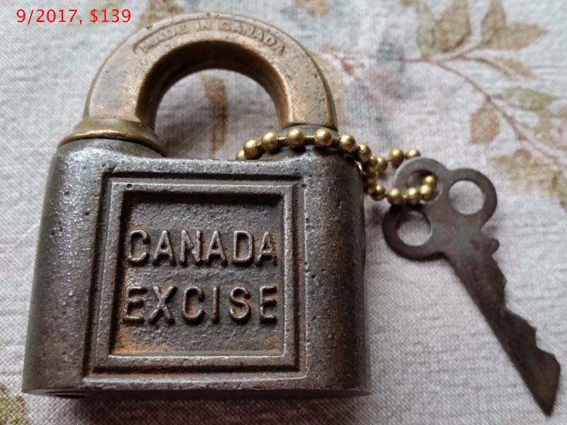 Steel body. Brass shackle. Keyway: Flat. “YALE & Towne MFG. CO.” is embossed on the obverse of the shackle. “MADE IN CANADA” is embossed on the reverse of the shackle.