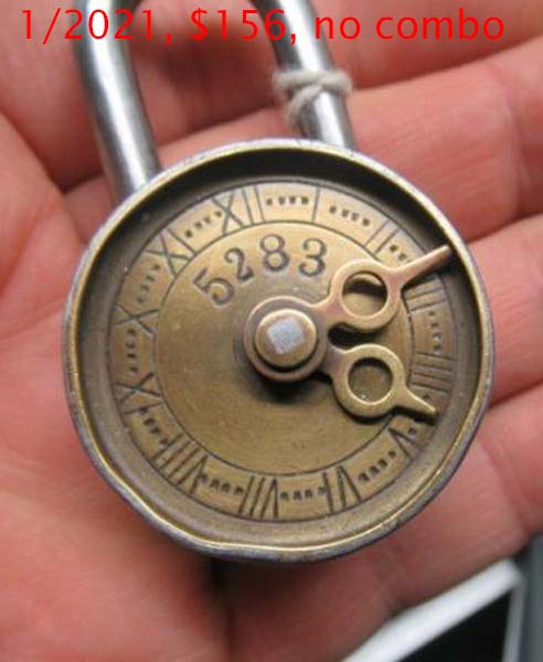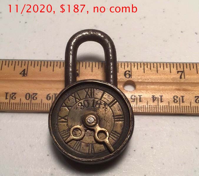 3 3/8″ high x 2 1/2″ wide. Iron body. Iron shackle.