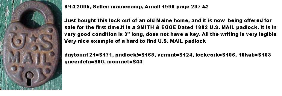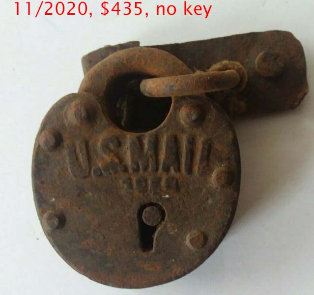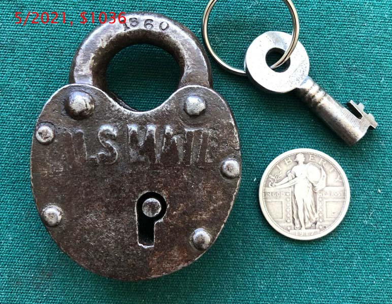 3 3/4″ high x 2″ wide. Brass body. Brass shackle. Lever. Double bitted Post key. “LOEFFELHOLZ & CO” is stamped on the dust guard.