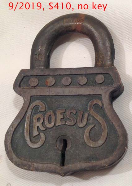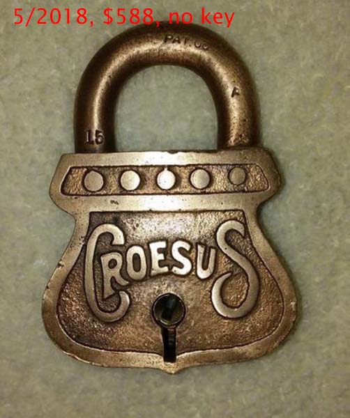 2 7/8″ high x 2″ wide x 1/2″ deep. Brass body. Brass shackle.Patent # 882192.