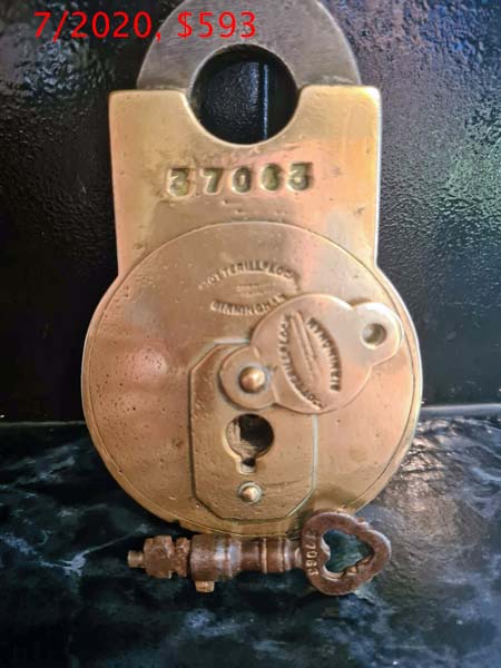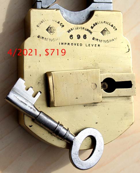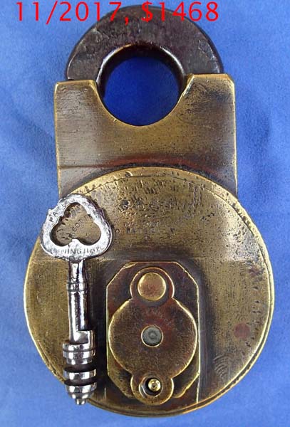 3 1/2″ high x 2 1/16″ wide x 1 1/2″ deep. Brass body. Steel shackle.