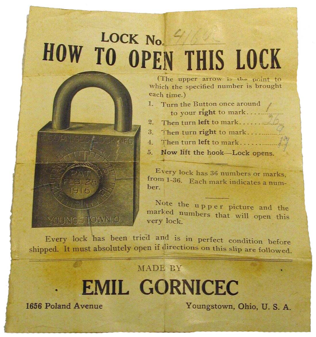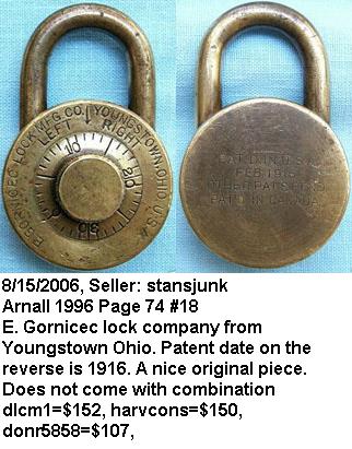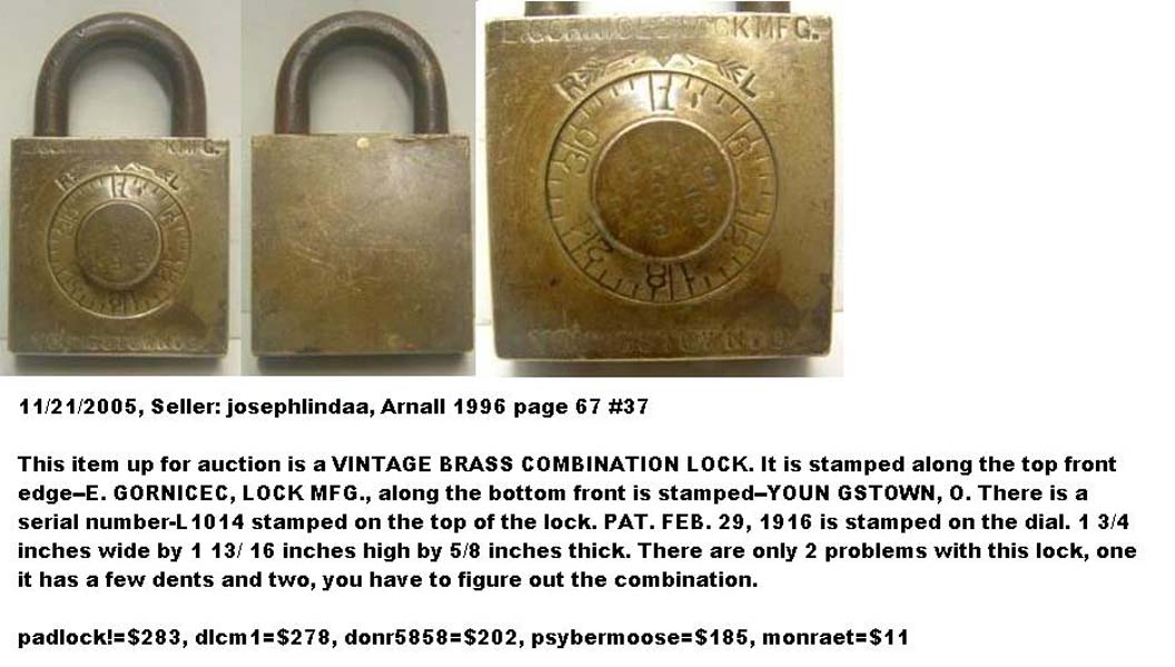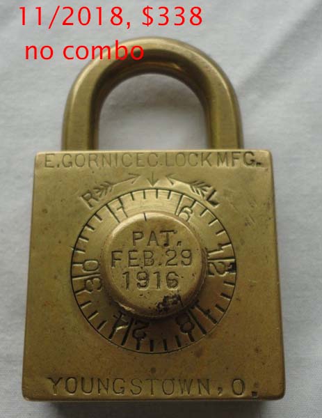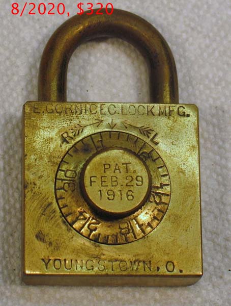 “E. GORNICEC” – Square. 1 13/16″ high x 1 3/4″ wide. All brass. “PAT. FEB. 29, 1916” is stamped on the dial.Patent # 1173348. More…