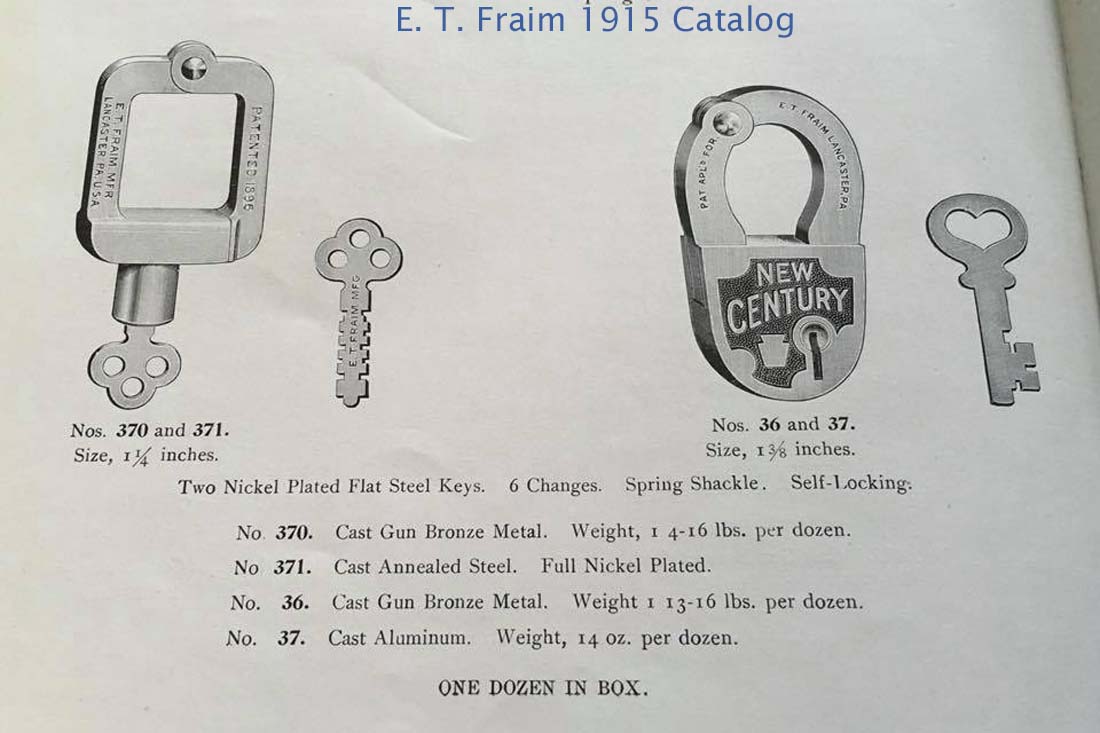 “E. T. FRAIM MFG. LANCASTER. PA. U.S.A. PAT.APL’D FOR”. 2 5/8″ high x 1 5/8″ wide. All brass.Patent #D27265. More…