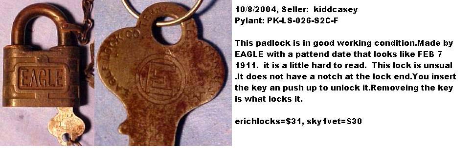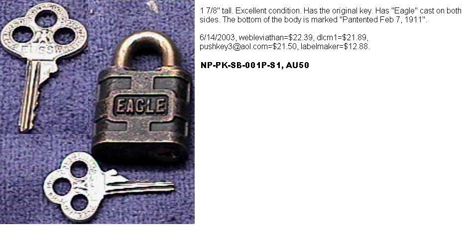 3 1/16″ high x 1 1/2″ diameter. Brass body. Steel shackle.Patent # 3035433.