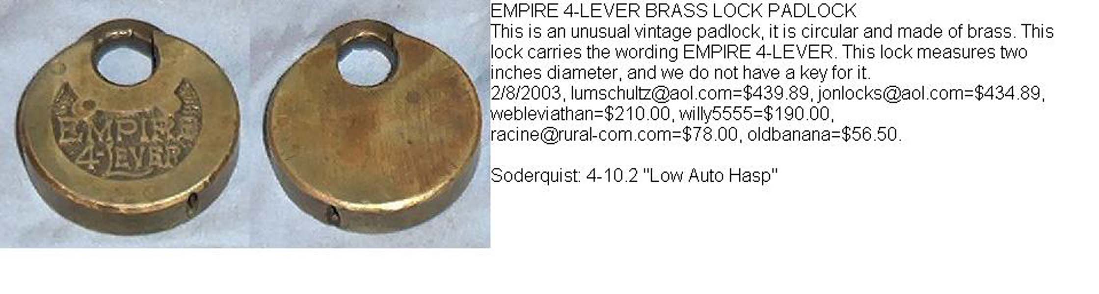 ← Push Key 4-Lever Brass Padlocks