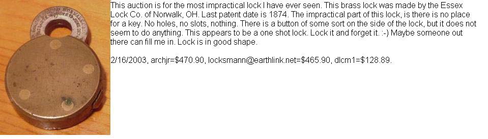 “. Steel body. Steel shackle. Henry Essex Patent #’s 130203 140617