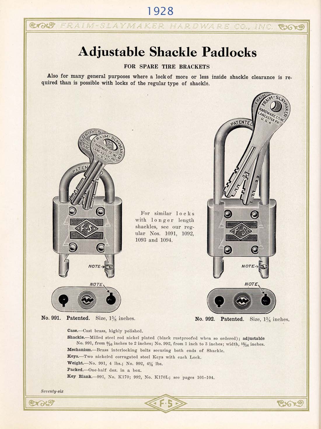 Brass body. Steel shackle. Warded. Auto throttle control, spark control, spare tire carrier, and disc wheels.Patent #11542442.