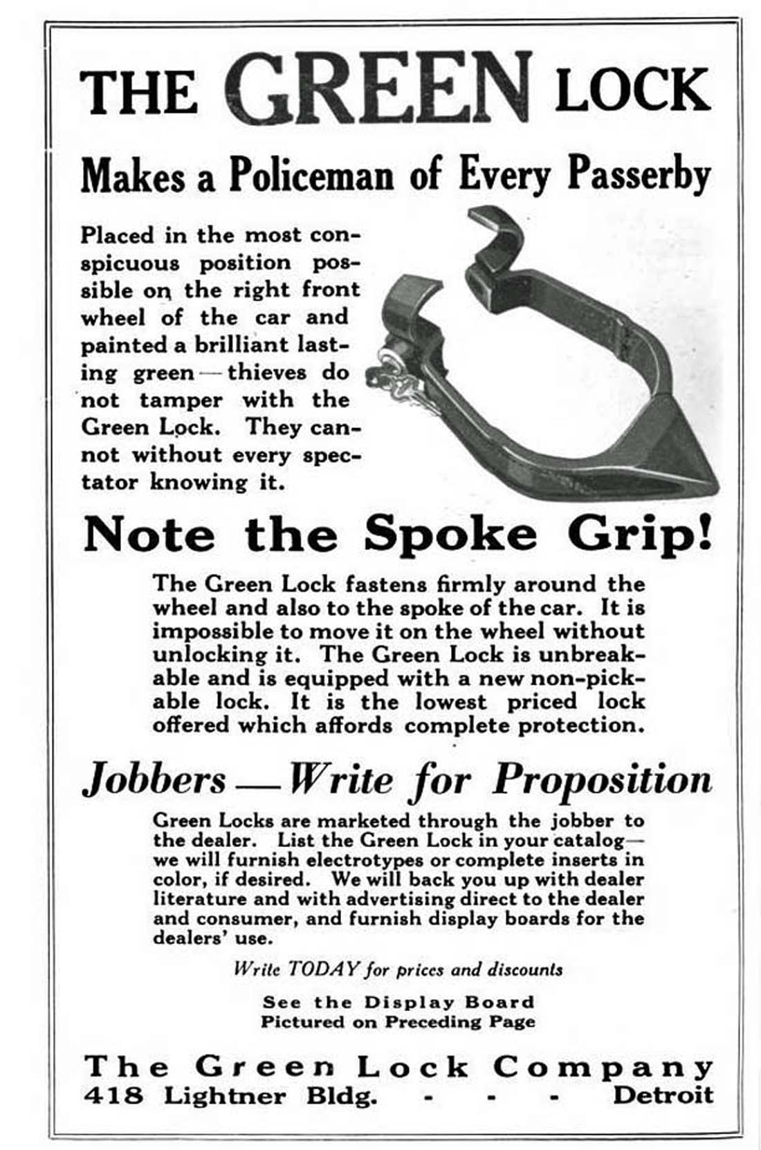 Steel construction. Auto wheel lock. The loop at the end was to wrap around a spoke. With the earlier version you could let air out of tire, rotate 90 degrees and re-inflate tire, then steal the car.