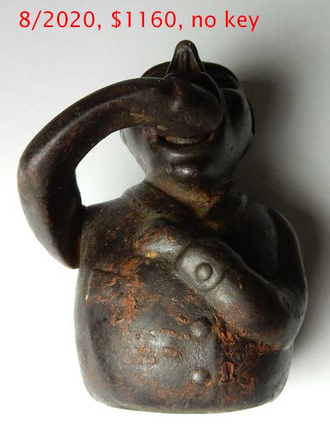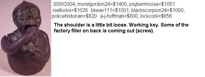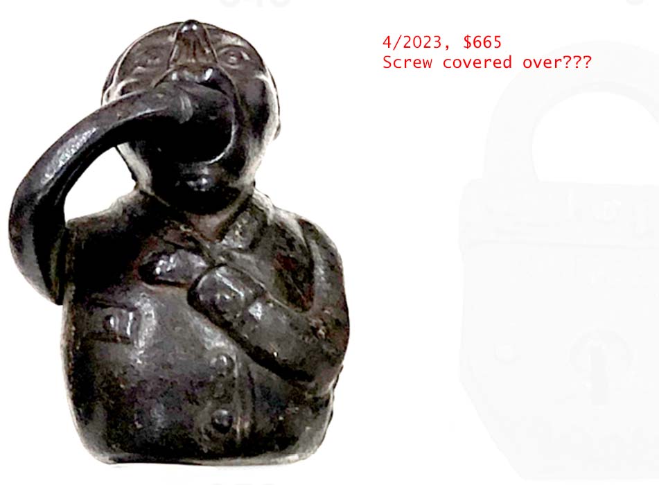 3″ high x 2 1/4″ wide. Iron. Barrel key.Patent # 195000.