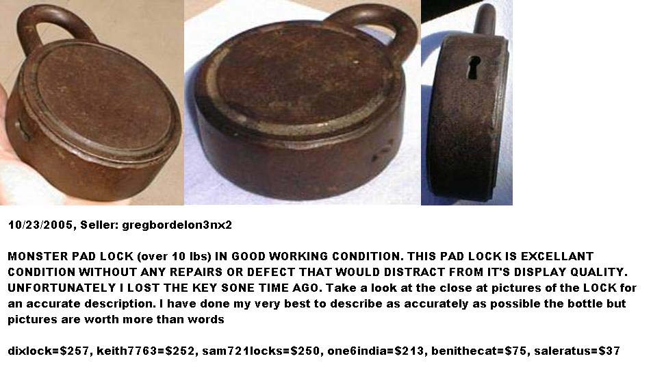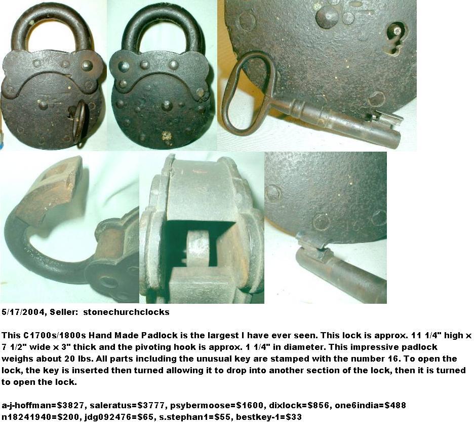 “J. C. H.” – Unknown Coat of Arms. 4 1/2″ high x 3 3/4″ wide. Steel body. Steel shackle. There is a hole going through the dust guard and the case to accept a wire seal. The lock requires 2 turns to lock and unlock.