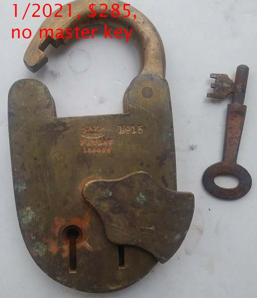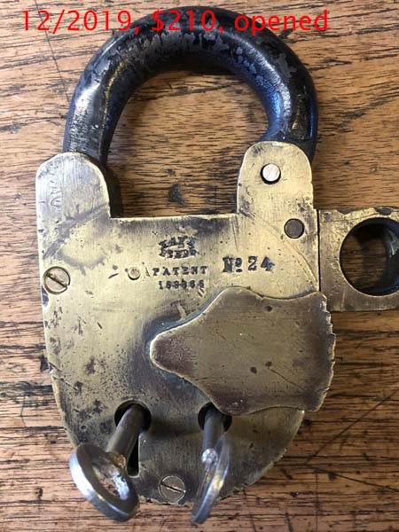 5 1/2″ high x 3″ wide x 1″ deep. Brass body. Bronze shackle. 3 levers. Servant/Master mechanism.Patent #100985. More…