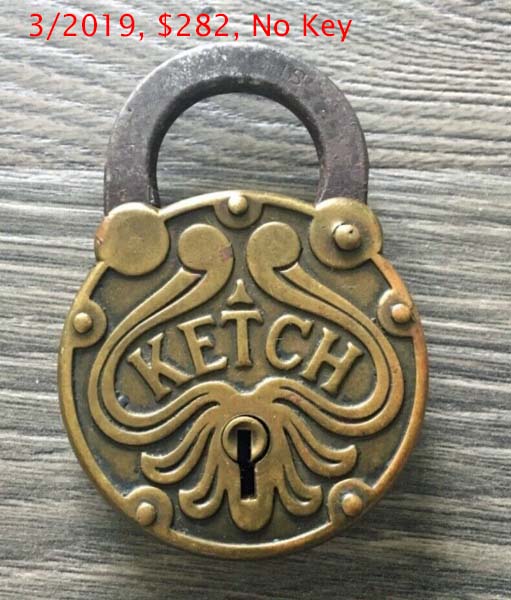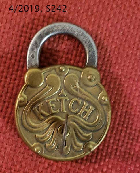 2 7/8″ high x 2″ wide. Brass body. Brass shackle. The reverse of the case is the same as the obverse.