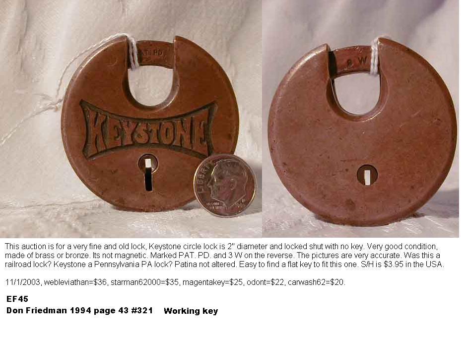 2 3/8″ high x 1 5/8″ wide. Steel body. Brass shackle.