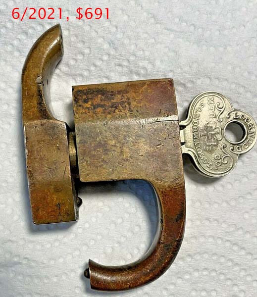 2.8″ high x 1.8″ wide. Brass body. Steel shackle.