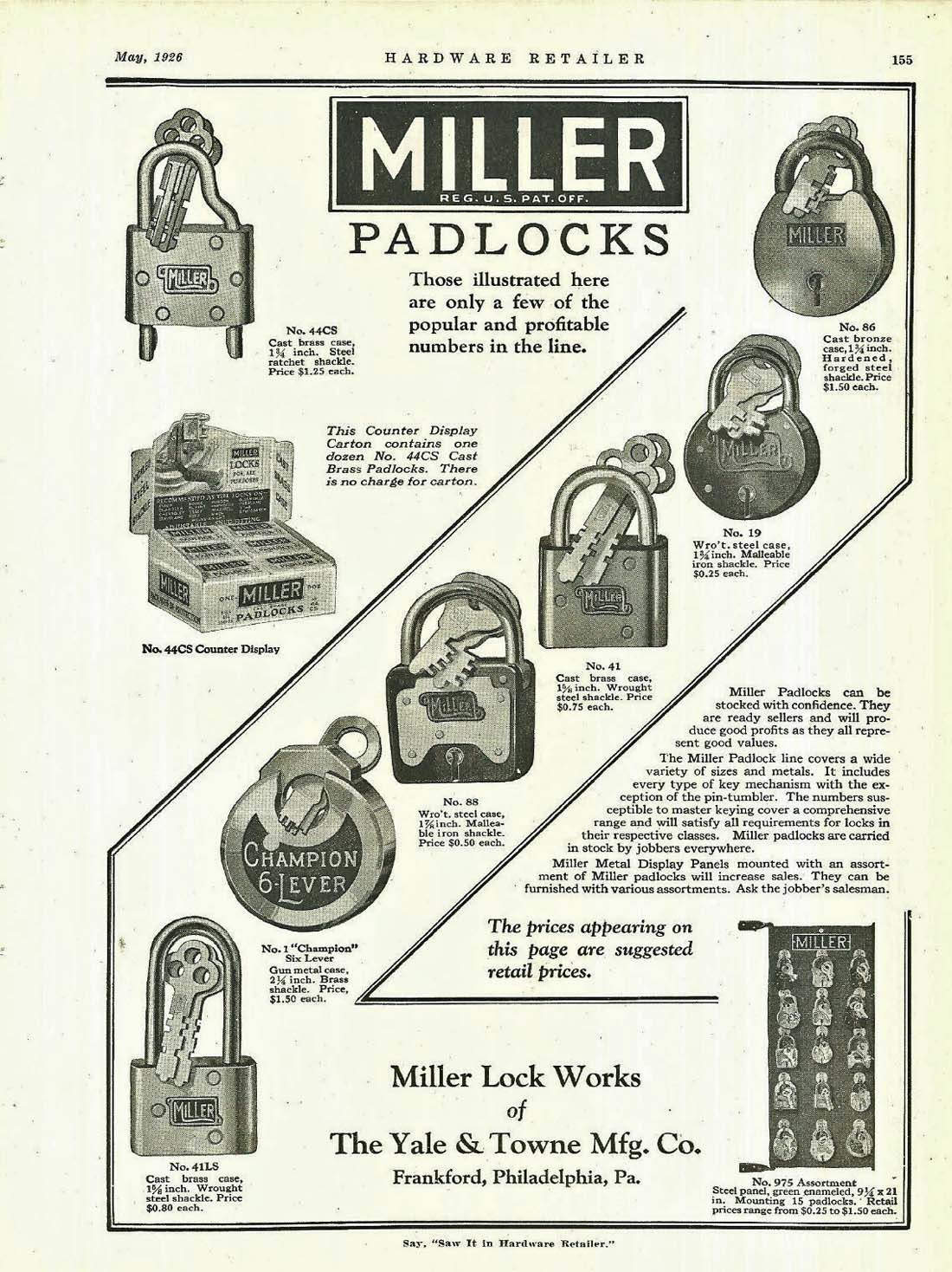 1 1/2″ wide. Brass body. Steel shackle. Warded. Auto spare tire lock.