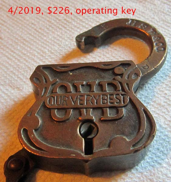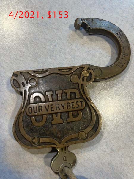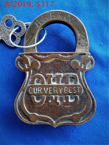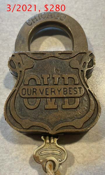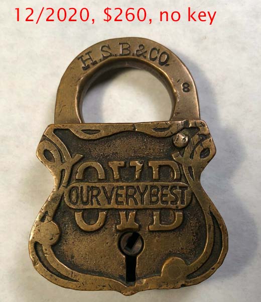 2 7/8″ high x 2″ wide x 5/8″ deep. Brass body. Brass shackle.