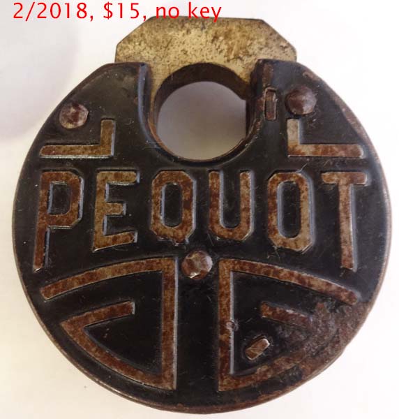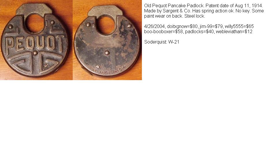 Pressed Steel body. 3″ high x 2.496″ diameter x .641″ deep. Some locks have “PAT AUG-11-1914” stamped on the reverse of the case at 6 o’clock.Patent # 1106400. (W-21.5).