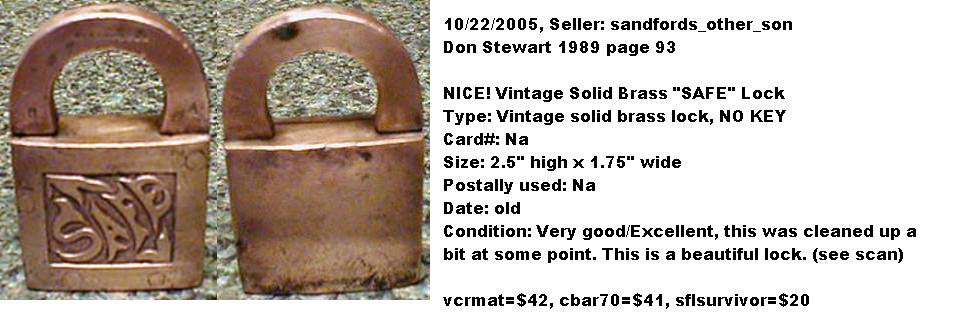 2″ high x 1 1/2″ wide. Brass body. Brass shackle.