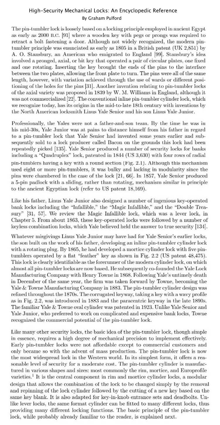 This is the first known attempt at the Pin Tumbler style mechanism patented by Abraham Ogier Stansbury, UK Patent #2,851 dated 1805. Stansbury subsequently was awarded a US patent for the same lock dated Feb 11, 1807. This patent was lost in the Patent Office fire of 1836.