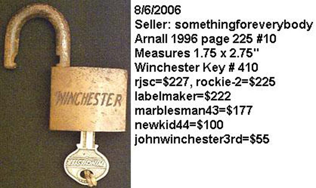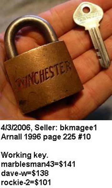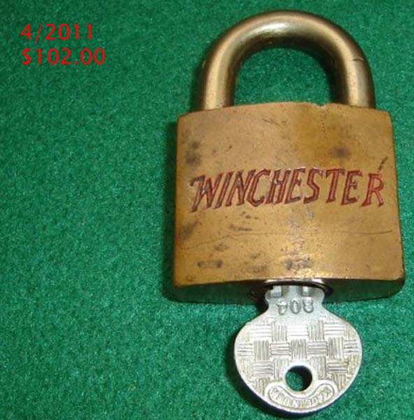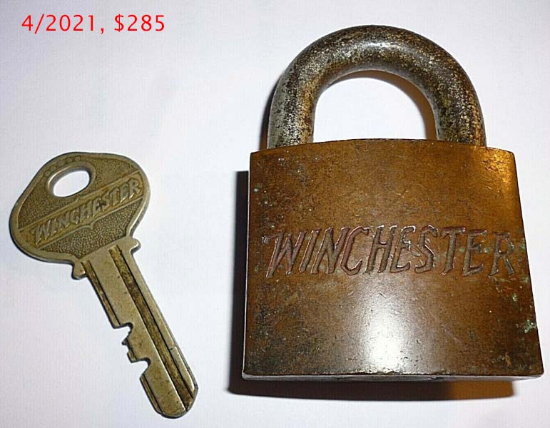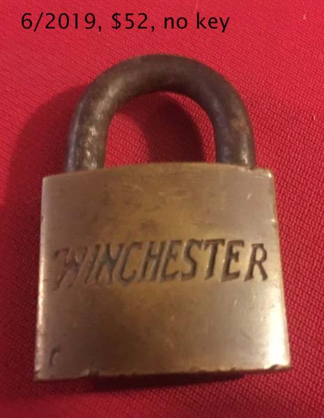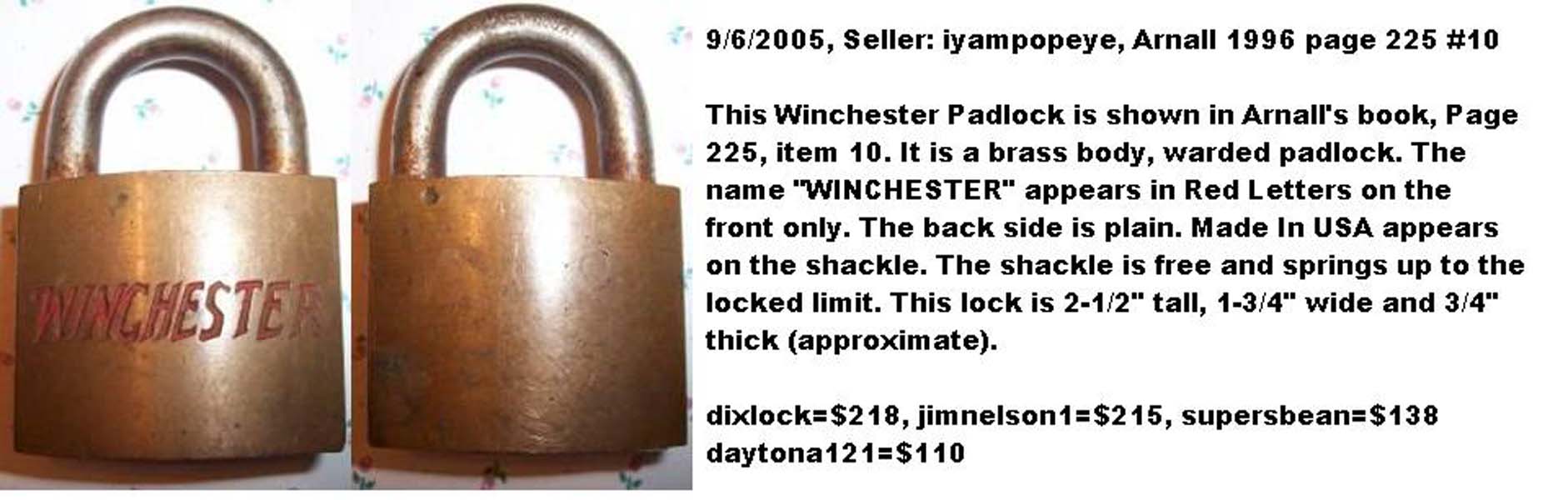 2 7/16″ high x 1 11/16″ wide x 3/4″ deep. Bronze body. Nickel plated steel shackle. Warded. “MADEINUSA.” is stamped on the reverse of the shackle.