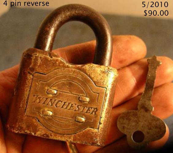 2 3/4″ high x 2″ wide x 3/4″ deep. Brass body. Steel shackle. Warded. Flat key. Same as # 1240 except 4 pins on the reverse of the body.