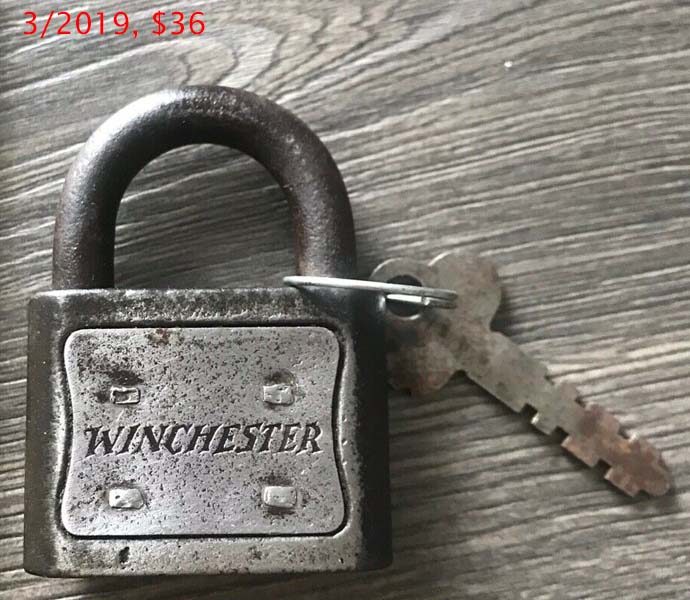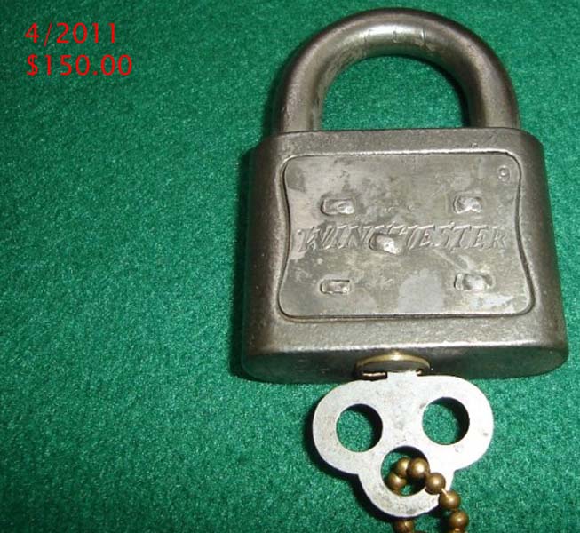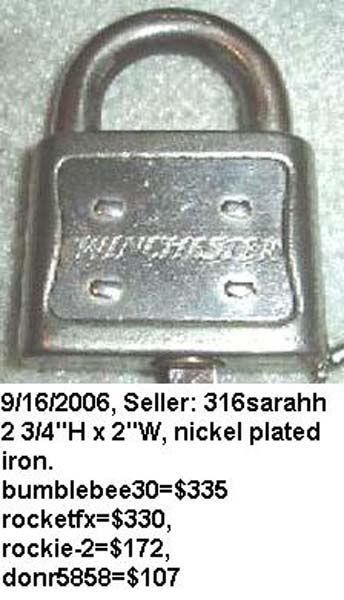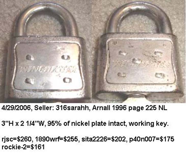 2 13/16″ high x 2 1/16″ wide x 11/16″ deep. Steel body. Steel shackle. Brass plates. “MADE IN USA” is stamped on the obverse of the shackle. Warded. Overall nickel plate finish.