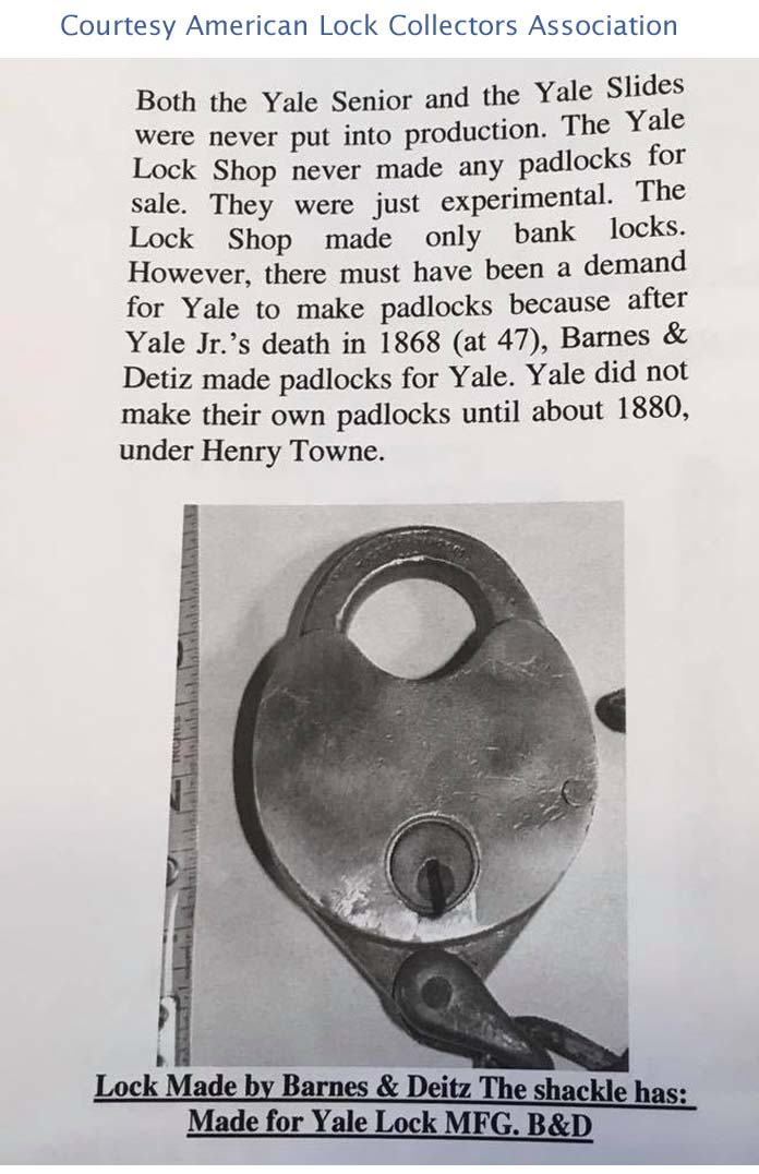 3 1/4″ high x 2 1/4″ wide. Brass body. Brass shackle.”B&D” on the obverse of the shackle.