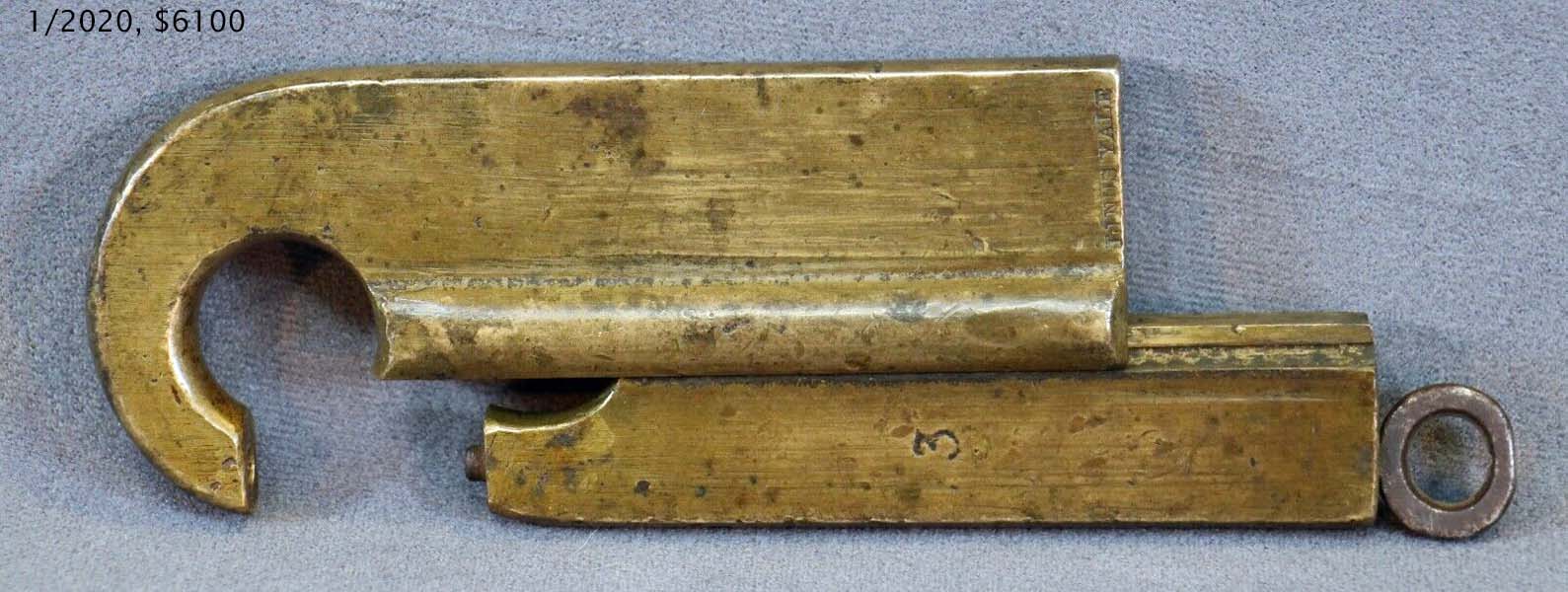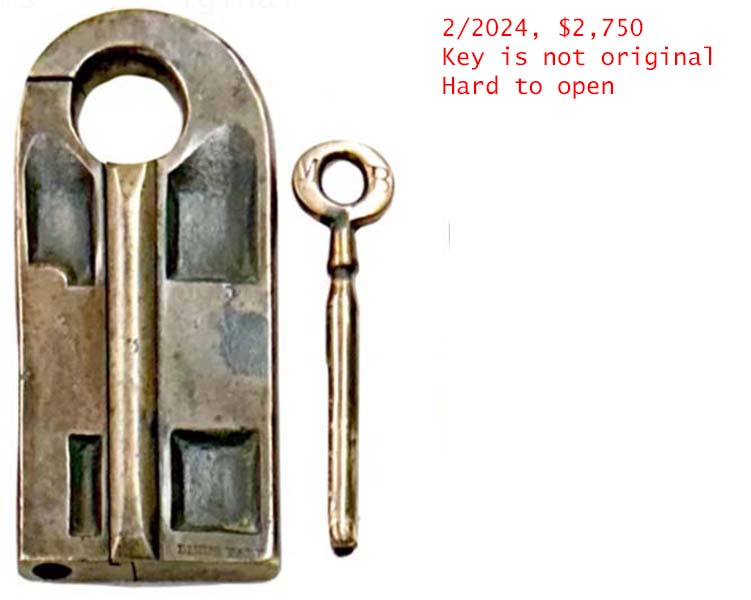 This is the early slider mechanism with a rotating plug.Patent #31278. See also Early Pin Tumbler Locks. We have not found this lock as yet.
