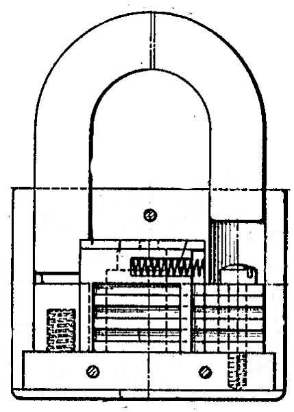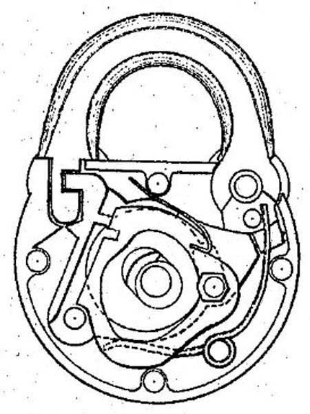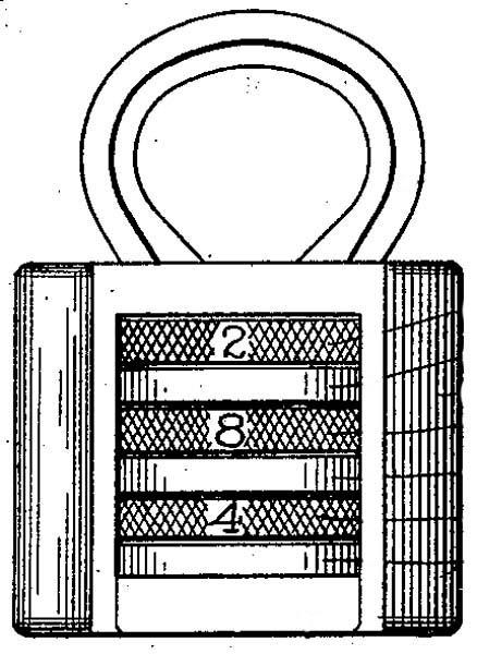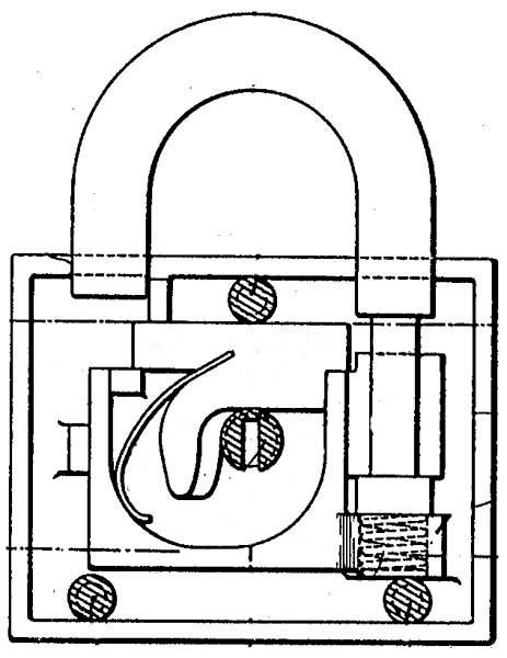 102643 | January 5, 1937 | Vile, Norman J. | American Hardware Corp. | Design | This padlock was manufactured by Corbin Cabinet Lock Co. | Classification: D8/334 | → ↗ |