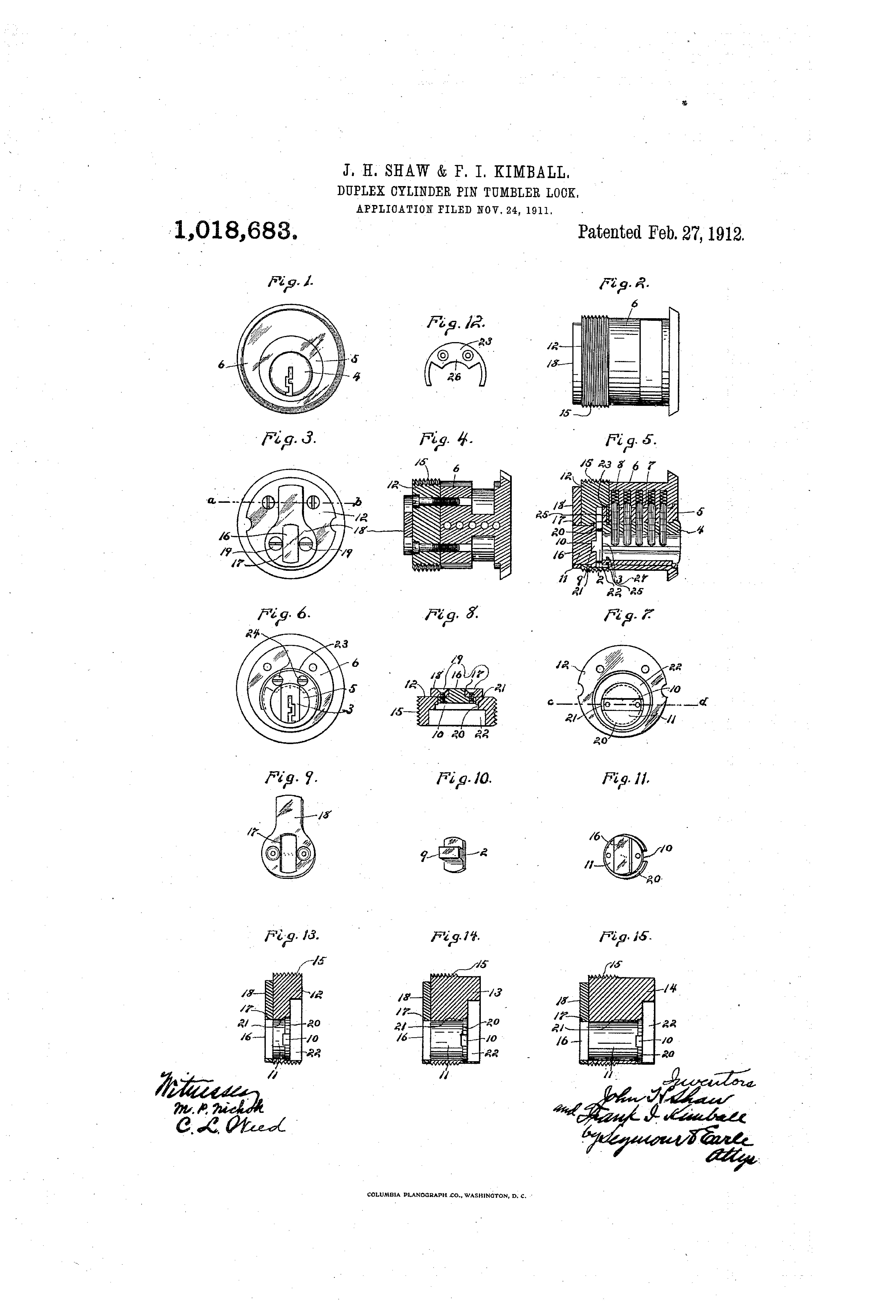 1018683 | 1911-11-24 | John H Shaw | Sargent Manufacturing Co | Keyed | → ↗ | |