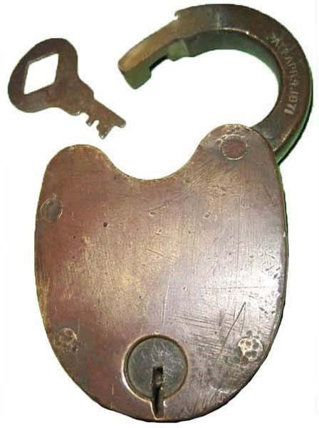 "G. MERKEL PATD APR.4.1871". 2 1/2" high x 1 7/8" wide. Brass body. Brass shackl