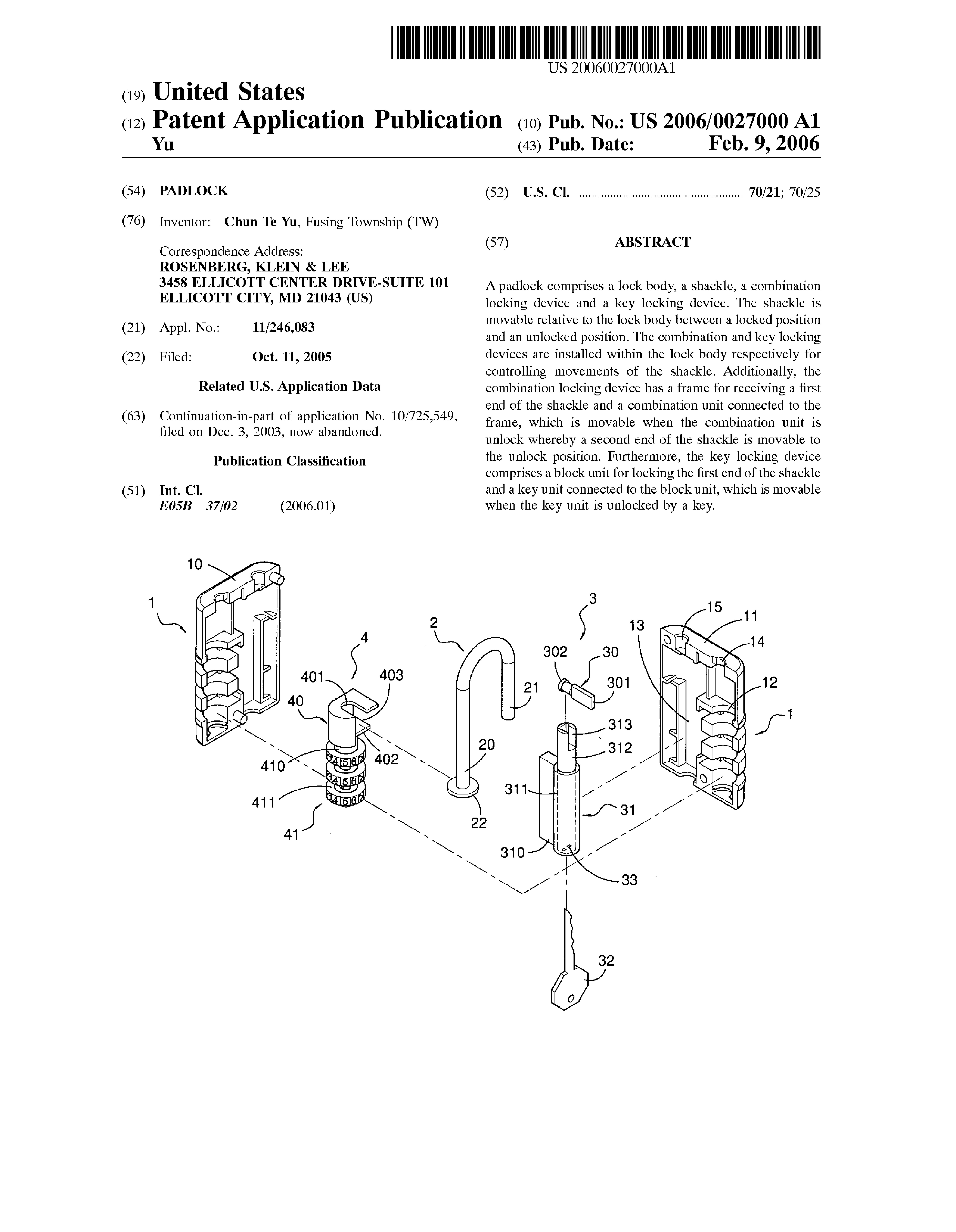 Padlock Patent — Keyed