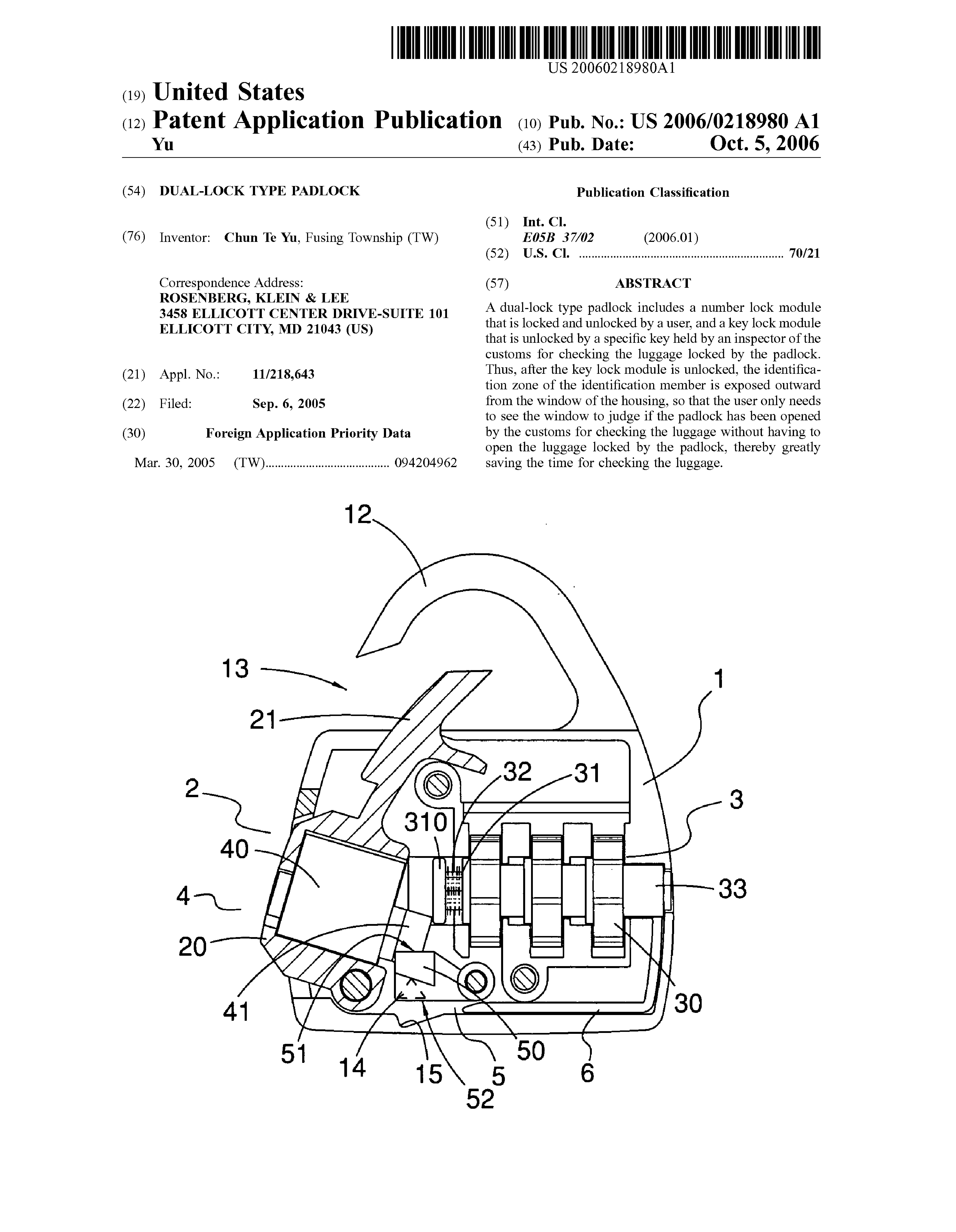 Patent Number 20060218980