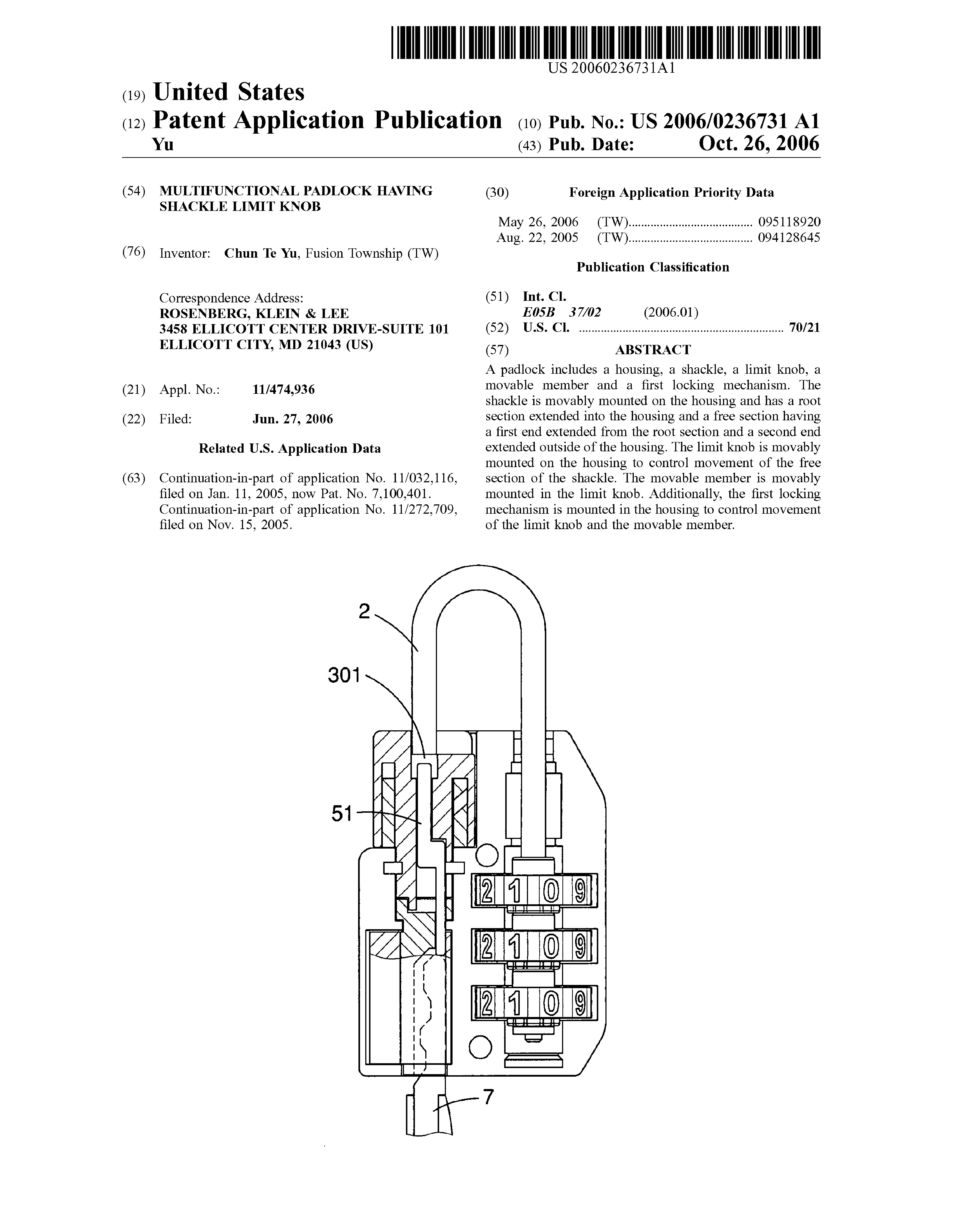 Padlock Patent — Keyed