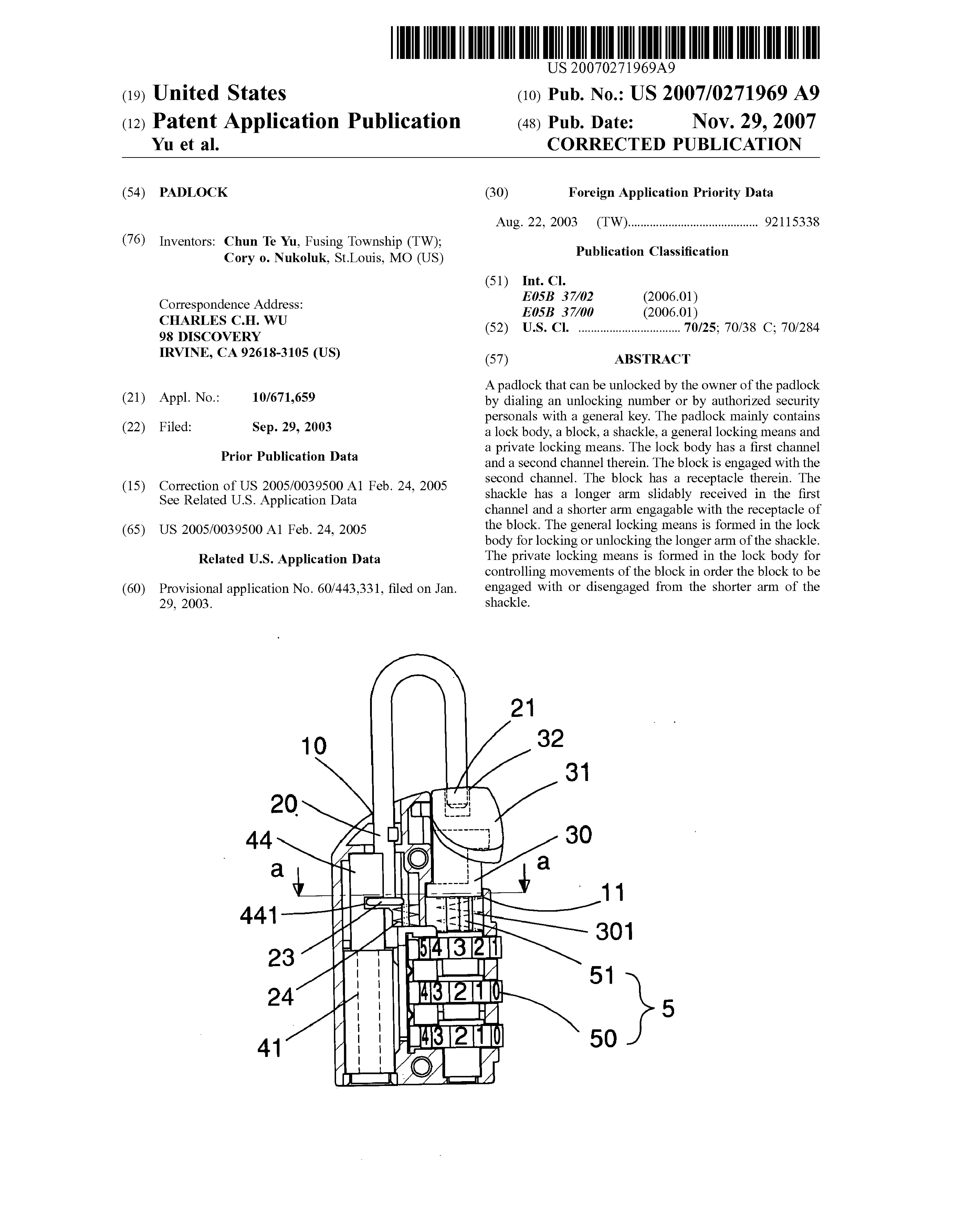 Padlock Patent — Keyed