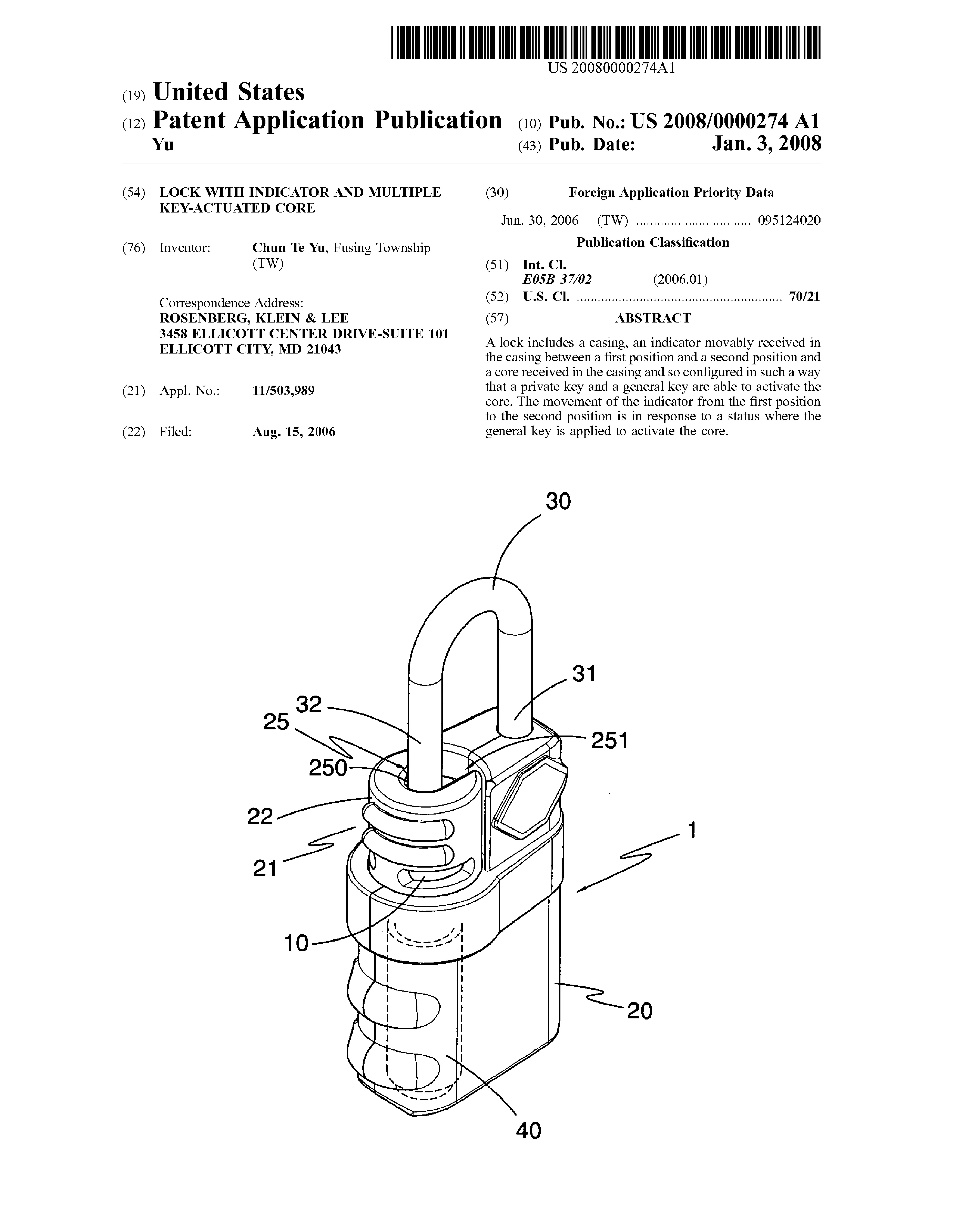 Padlock Patent — Keyed