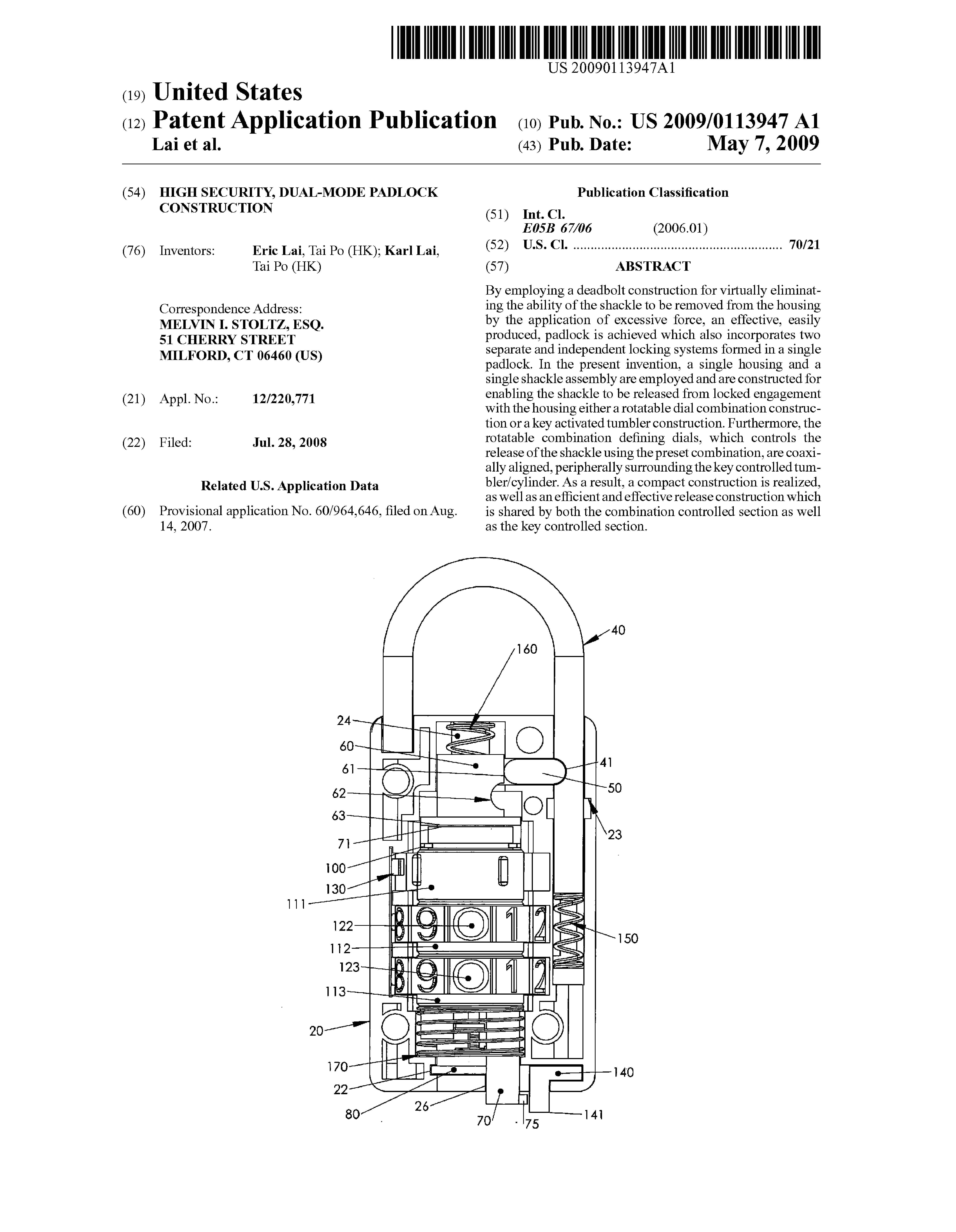 Padlock Patent — Keyed
