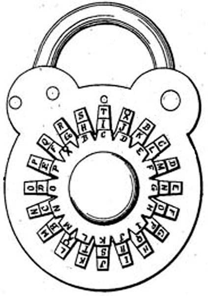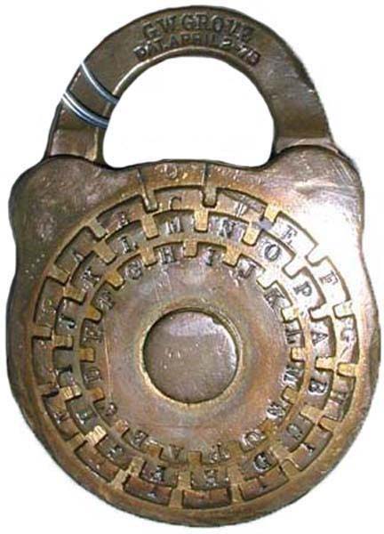 "G.W. GROVE". 3 1/4" high x 2 1/2" wide. Brass body. Brass shackle. Brass dials.