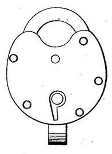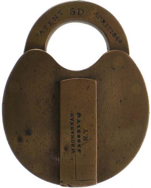 "L. G. TILLOTSON & CO No 8 DEY. ST N.Y.". 2 1/2" wide. Brass body. Brass shackle
