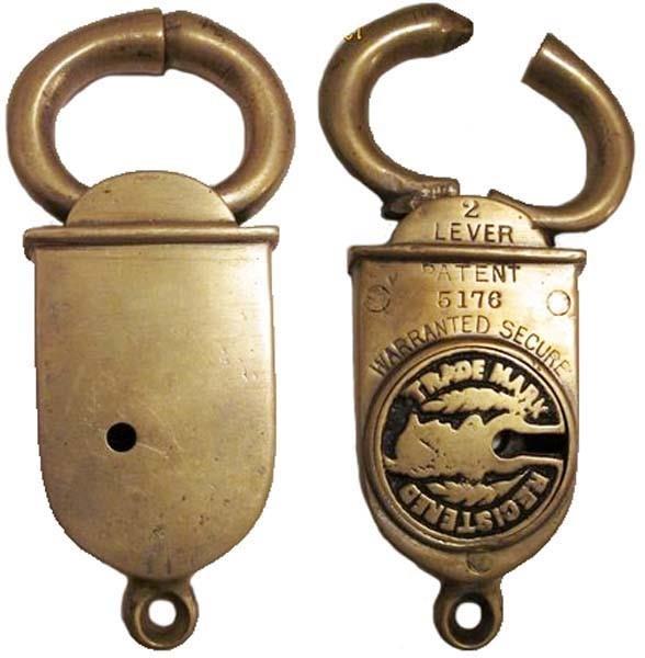 "REGISTERED TRADEMARK 2 LEVER PATENT 5176 WARRANTED SECURE"