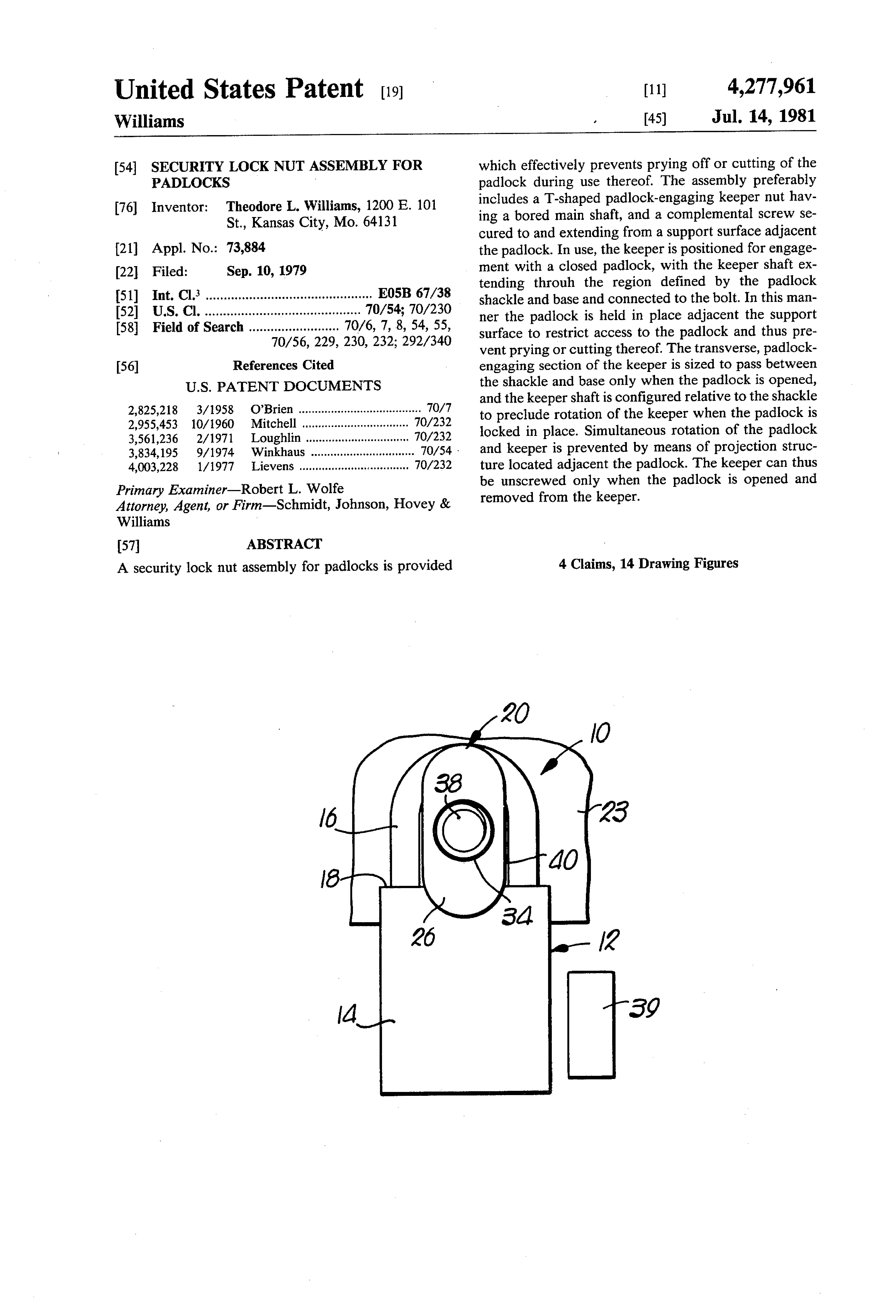 Padlock Patent — Keyed
