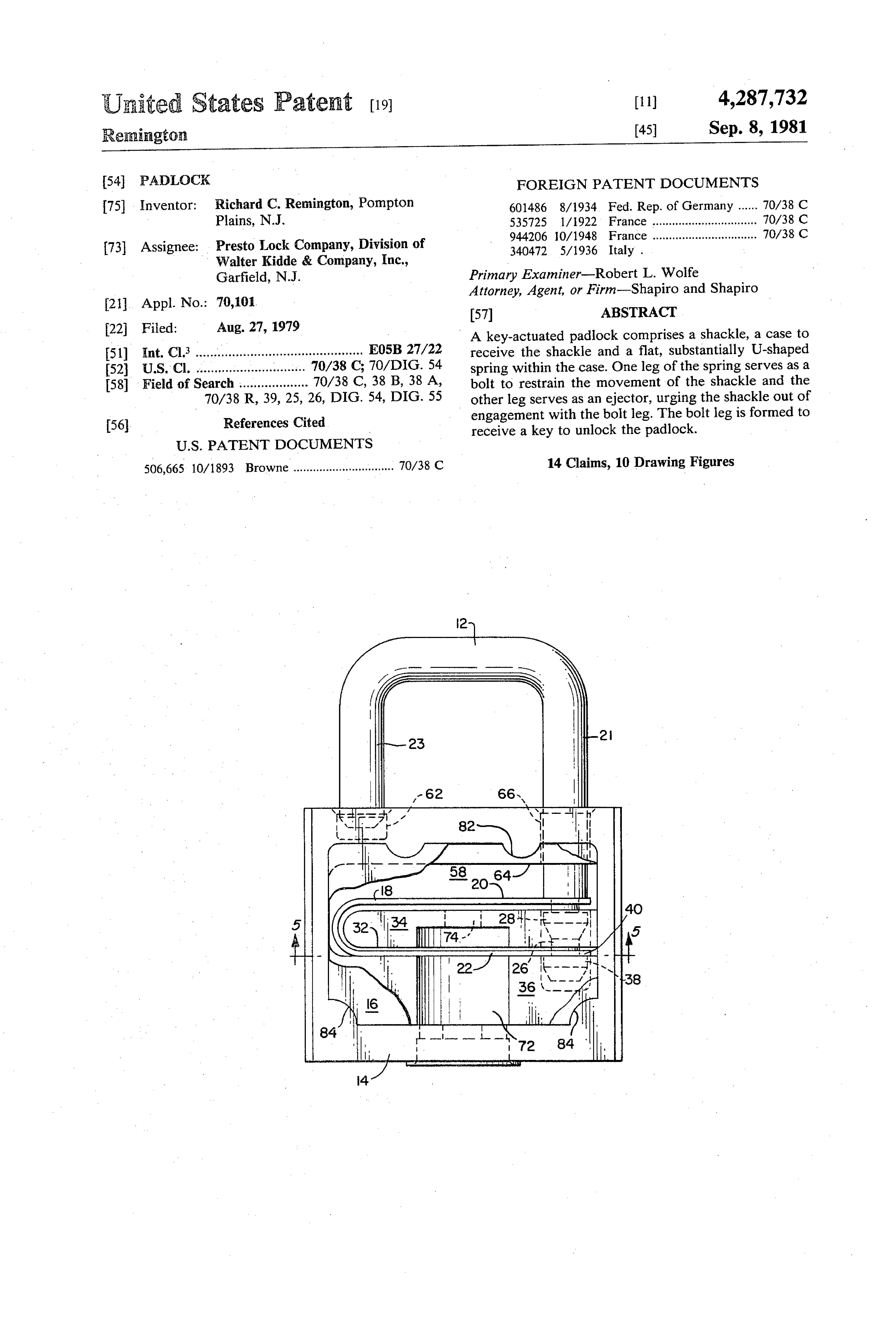 Padlock Patent — Keyed